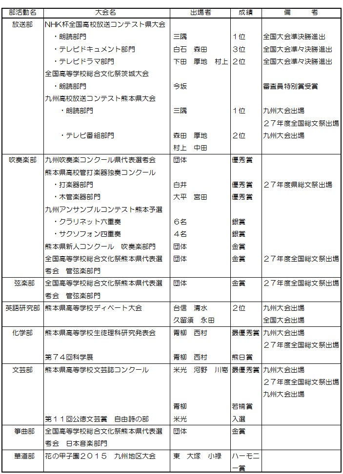 ■済々黌高校 平成27年度高校総体・新人戦 主な結果